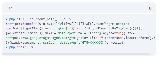 Change the “Code Type” from HTML to PHP Snippet. Wrap your GTM code in a conditional logic statement like this:
